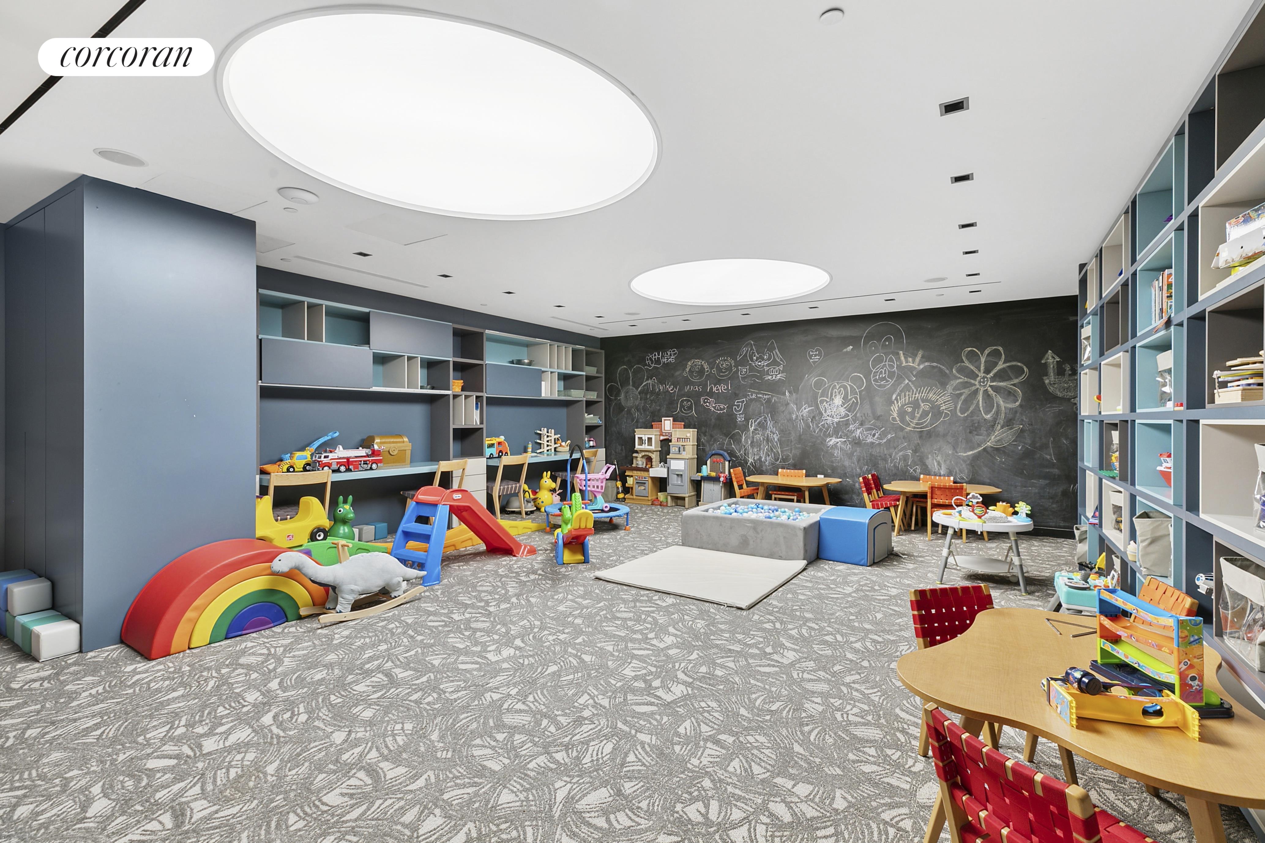 Residents of 242 Broome enjoy a comprehensive suite of amenities, including a 24-hour concierge and resident manager, fitness center with changing rooms, entertainment lounge with kitchen and billiards, flex workspace, and a landscaped rooftop terrace with outdoor dining.