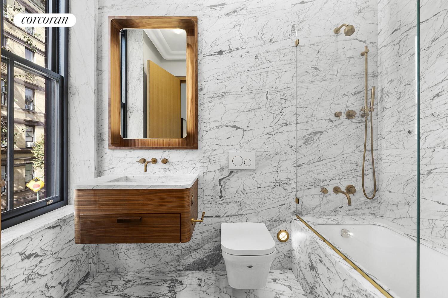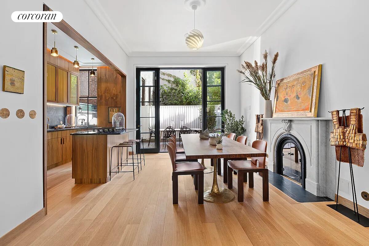 Incredible opportunity to purchase this newly renovated townhouse on highly coveted West 4th Street. Located on a tree-lined block in prime West Village, this lovely landmark home is a must-see. No expense was spared in this Sebastien Segers designed home boasting six bedrooms, five full bath and two half baths. Enter through an inviting foyer on the parlor floor and notice the walnut paneling, a unique detail present throughout the home. Townhouse lovers will delight in the original refinished fireplaces, wood casement windows, and 11-foot-high ceilings. The large living space flows beautifully to the open kitchen and dining. There is a wood-burning fireplace in the living room and a gas fireplace in the dining area. The walnut kitchen features custom cabinetry, black Venato counters, Miele appliances, espresso maker, Tyara counter tops, center island with a Marin finish, and Watermark aged antique brass fixtures. There is a seamless flow from indoor to outdoor living with a terrace featuring glass block flooring, white quartz counter, sink, grey backsplash, and gas grill.