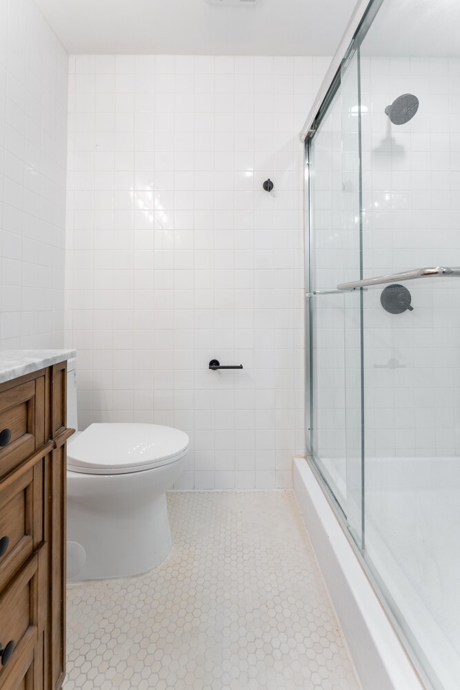 Newly updated full and half bathrooms with marble finishes