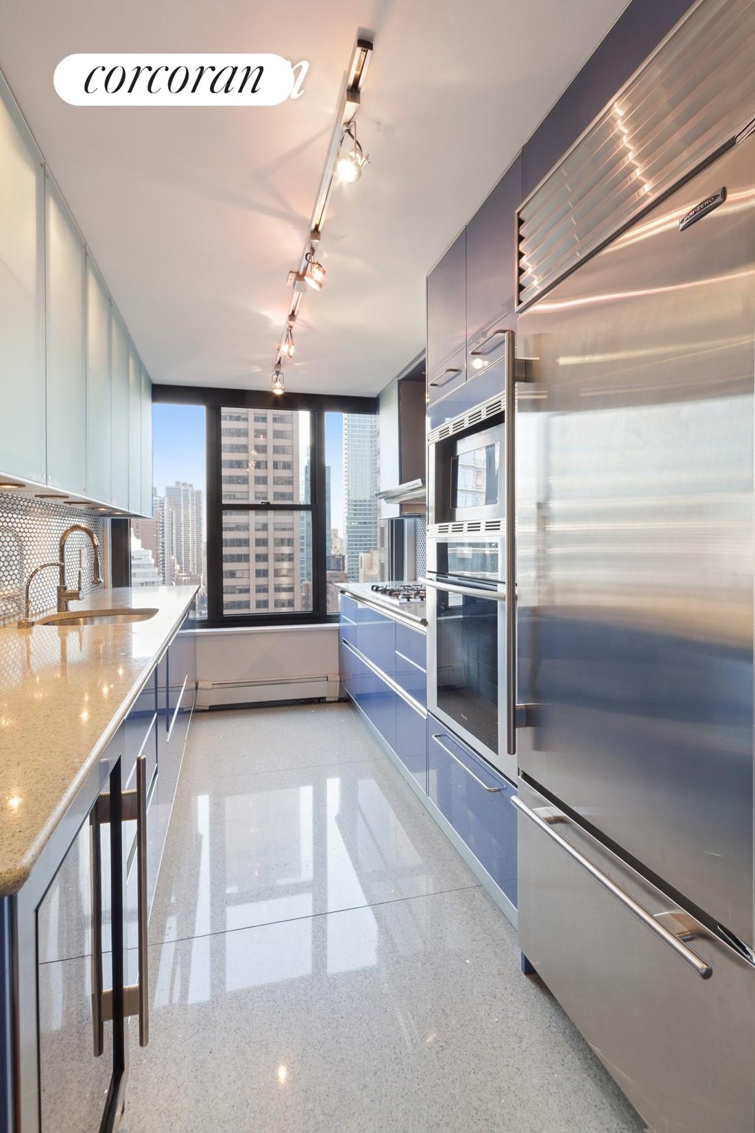 GLORIOUS, high-floor one bedroom CONVERTIBLE TWO with large windowed office/guest room, two full bath WHITE GLOVE CONDO in pristine condition. Spacious, split room layout with panoramic OPEN SKYLINE views. Sliding glass door to second bedroom which can also function as home office or leave open for massive L-shaped living room. Designer chef's kitchen has been outfitted with custom Snaidero cabinets, mica granite counter tops, a Subzero fridge, separate Subzero wine fridge, Miele stove, oven, dishwasher and built-in Nespresso machine. The marble master en-suite bathroom features a jacuzzi soaking tub, separate shower and Toto Neorest toilet. The second bathroom features a Miele WASHER/DRYER and an abundance of built-in storage. Additional special features of this home include built-in cabinets, windows custom-fitted with automatic Lutron shades throughout and black-out shades and wall safe in the king-sized bedroom.